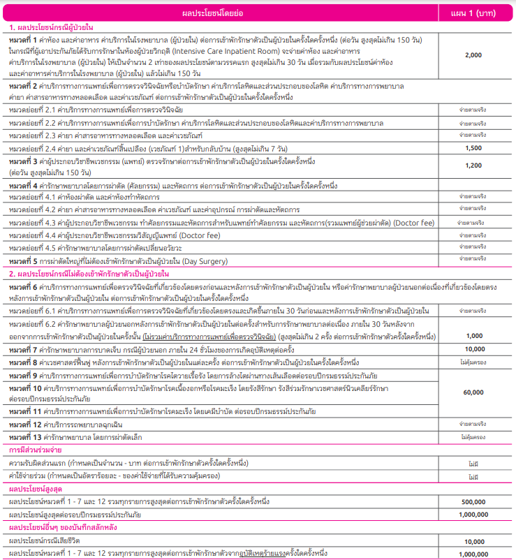 ตารางแสดงแผนความคุ้มครองโดยย่อ