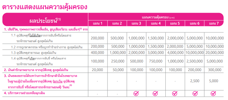 **** กรณีเลือกแผน 7 ทั้งนี้นิยามของคำว่าอุบัติเหตุสาธารณะ เป็นไปตามที่ระบุในกรมธรรม์