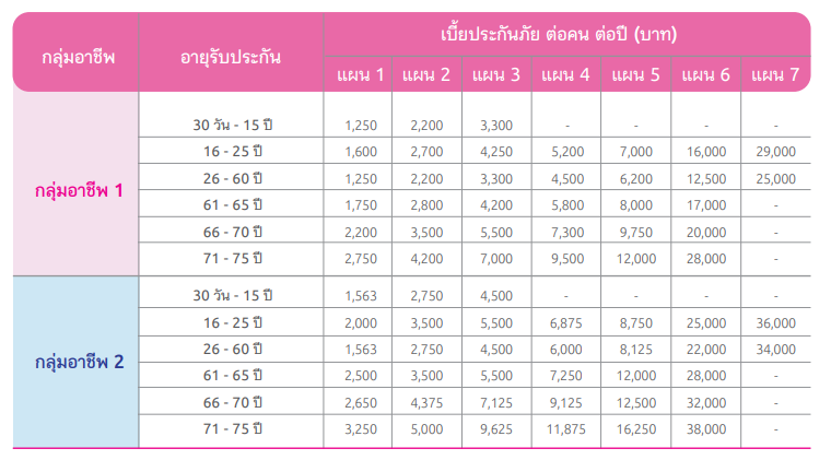 - รับประกันเฉพาะกลุ่มชั้นอาชีพ 1 และ ชั้นอาชีพ 2