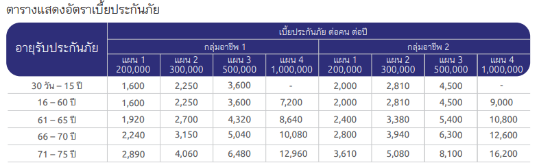 - รับประกันเฉพาะกลุ่มชั้นอาชีพ 1 และ ชั้นอาชีพ 2