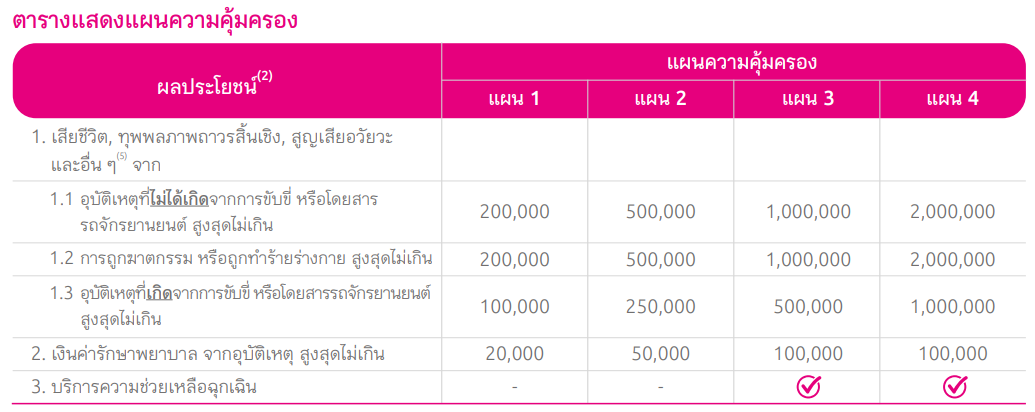 - คุ้มครองอุบัติเหตุตลอด 24 ชั่วโมง ทั่วโลก