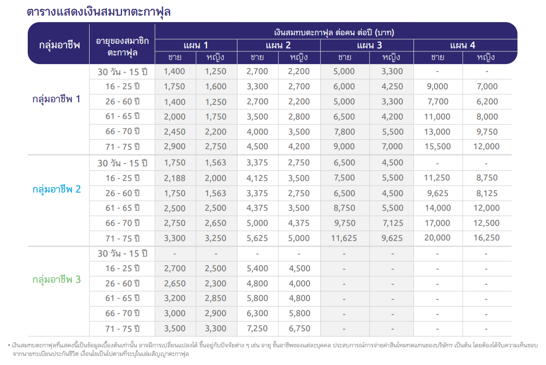 - รับประกันได้ทุกกลุ่มชั้นอาชีพ 1 , ชั้นอาชีพ 2 และ ขั้นอาชีพ 3
