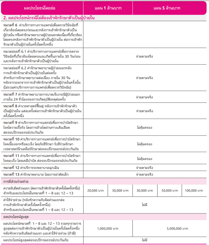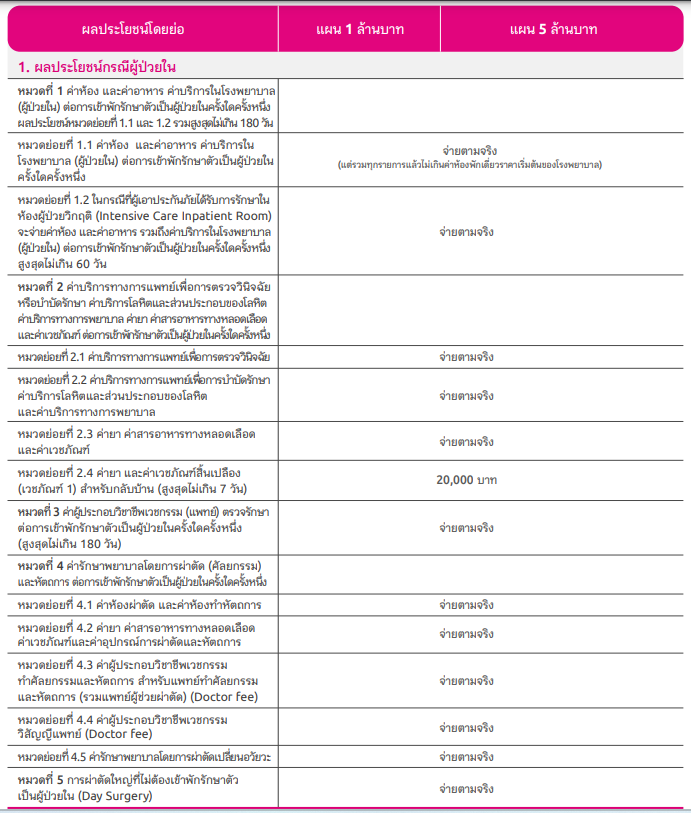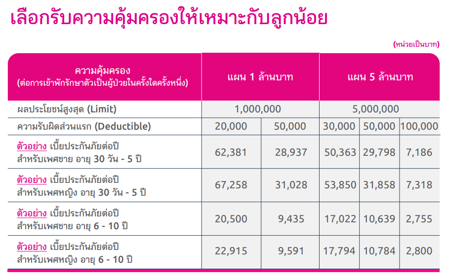 ตารางความคุ้มครองสุขภาพ ดีคิดส์ พลัส (D Kids Plus)