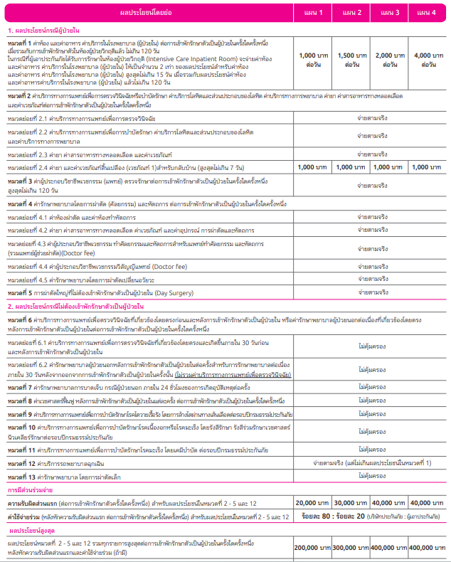 - จ่ายค่ารักษาพยาบาล สูงสุดถึง 400,000 บาท
