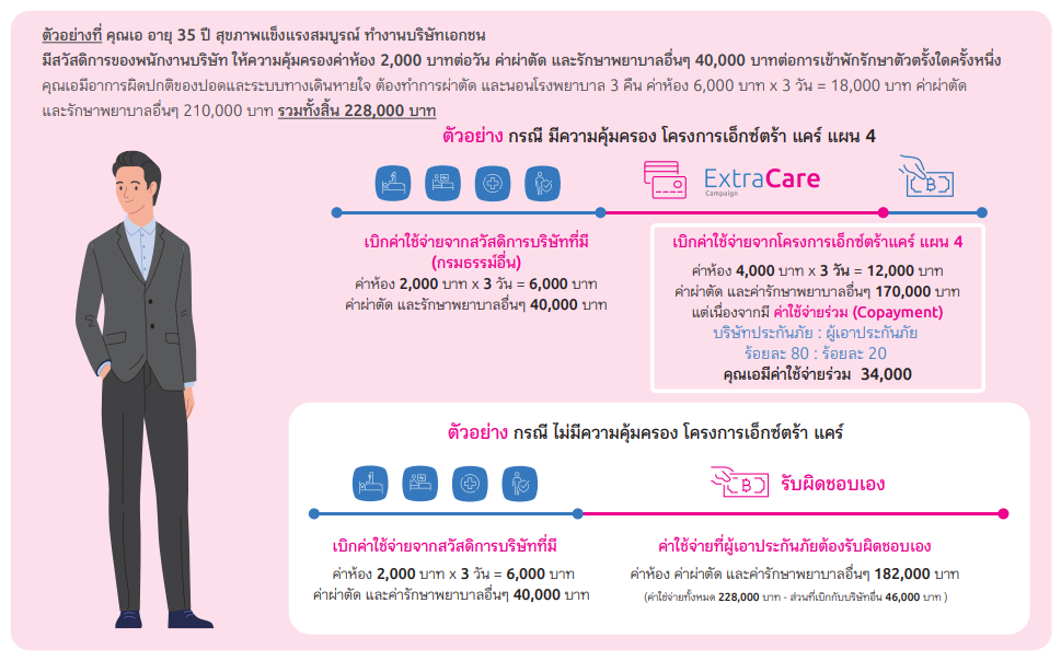 ความคุ้มครองของแบบประกันสุขภาพแบบ เอ็กซ์ตร้า แคร์