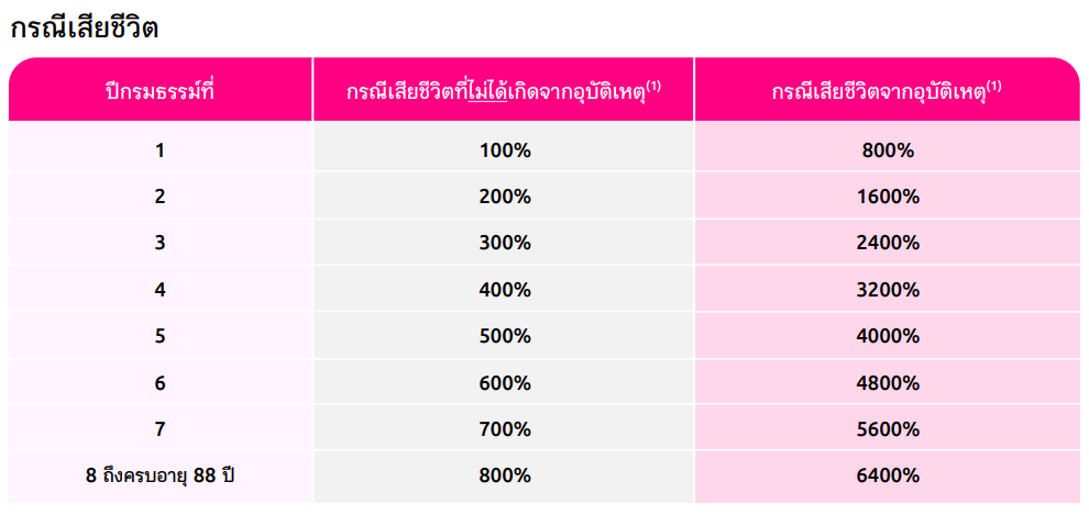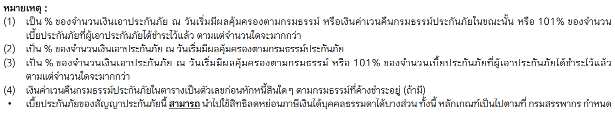 - อายุที่รับประกัน : ตั้งแต่ 18 ปี - 65 ปี