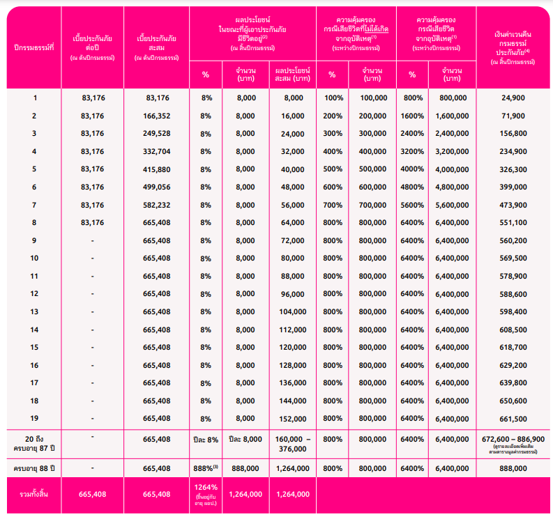 - ระยะเวลาชำระเบี้ยประกัน : 8 ปี