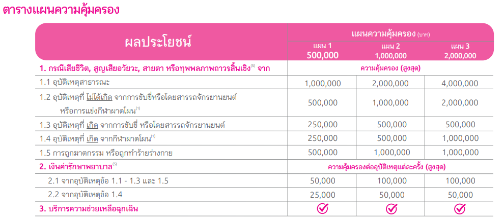 - อุบัติเหตุทั่วไป รับค่ารักษาพยาบาล สูงสุดถึงครั้งละ 100,000 บาท