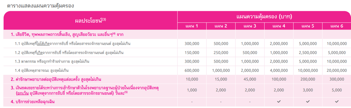 - รายได้ไม่สะดุด : มีเงินชดเชยรายได้ เมื่อนอนโรงพยาบาลจากอุบัติเหตุ