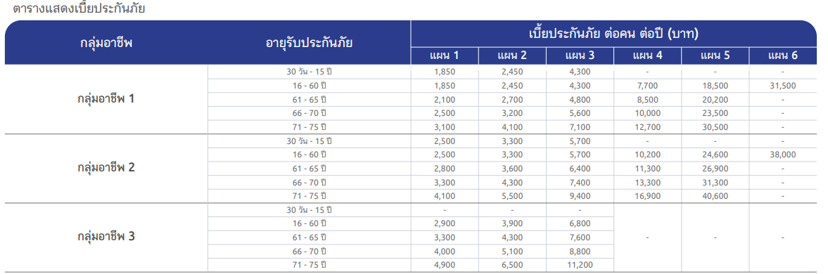 - รับประกันได้ทุกกลุ่มชั้นอาชีพ 1 , ชั้นอาชีพ 2 และ ขั้นอาชีพ 3